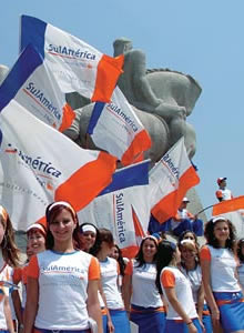 as ruas Além dos 350 outdoors, a campanha também esteve nas ruas por meio de 200 placas e painéis em pontos e abrigos de ônibus, relógio, totem informativo, front light e back light. Mais de 200 pessoas ficaram em pontos conhecidos agitando enormes bandeiras com as cores da campanha e a nova marca. “A idéia era colorir o céu e a cidade de azul e laranja, em uma ação alegre e dinâmica. Além disso, queríamos mostrar a imagem de modernidade da SulAmérica, reforçando sua posição de destaque no mercado segurador”, explicou Woody Gebara, diretor de criação da MPM Propaganda, que preparou sua primeira grande campanha para a SulAmérica após o seu relançamento.