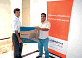 Fortaleza: Fábio Alencar, da ACA Corretora, recebendo uma TV do gerente